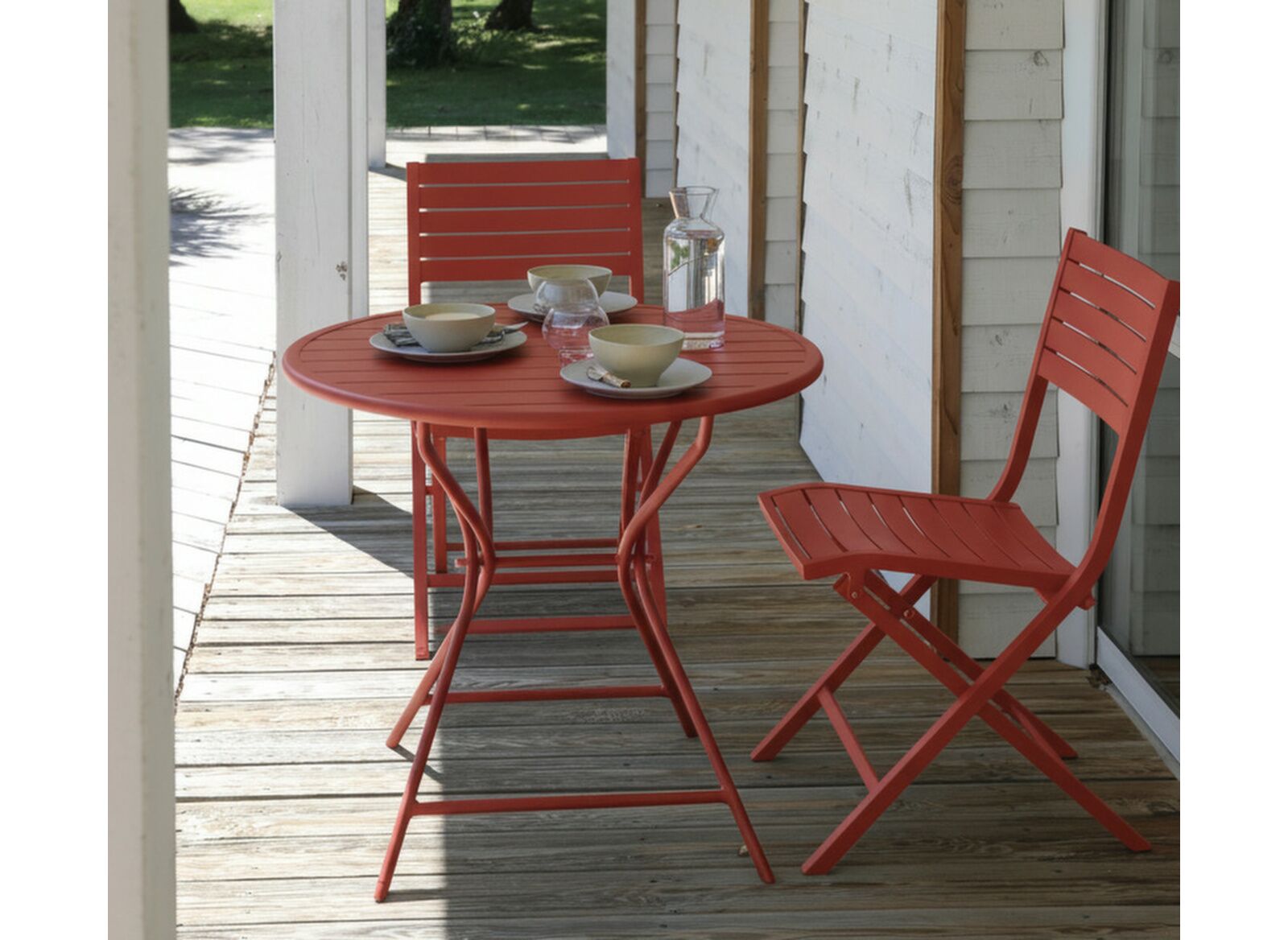 Sa grande légèreté et sa résistance aux conditions extérieures en font un choix idéal, même en bord de mer. Associez-le à des chaises pliantes assorties, des assises en toile tendue ou en résine tressée pour un espace détente harmonieux et accueillant.